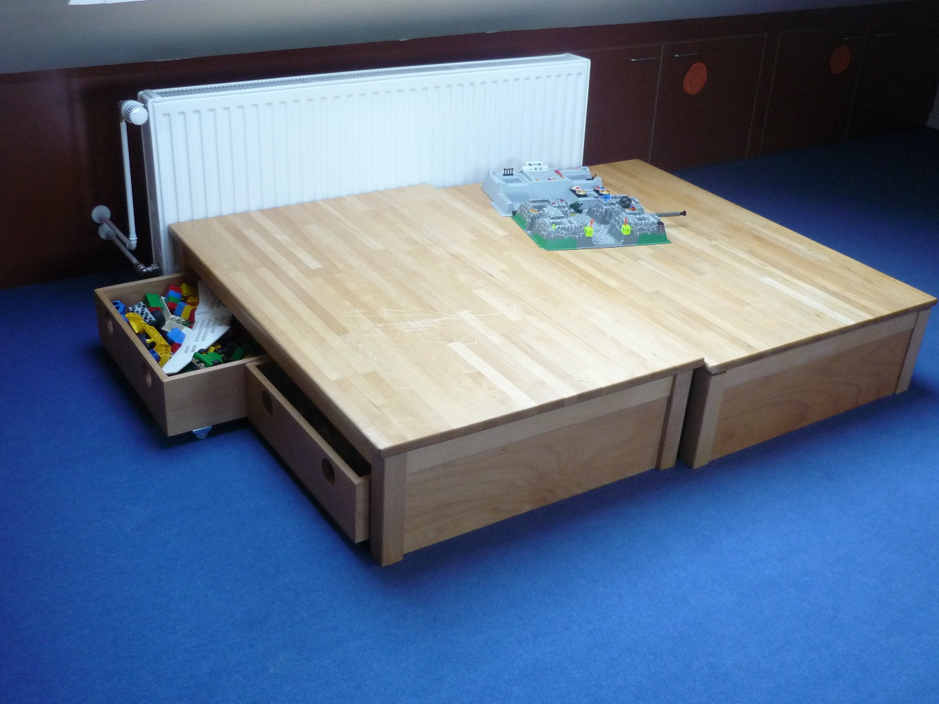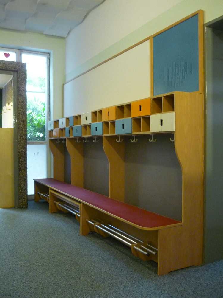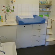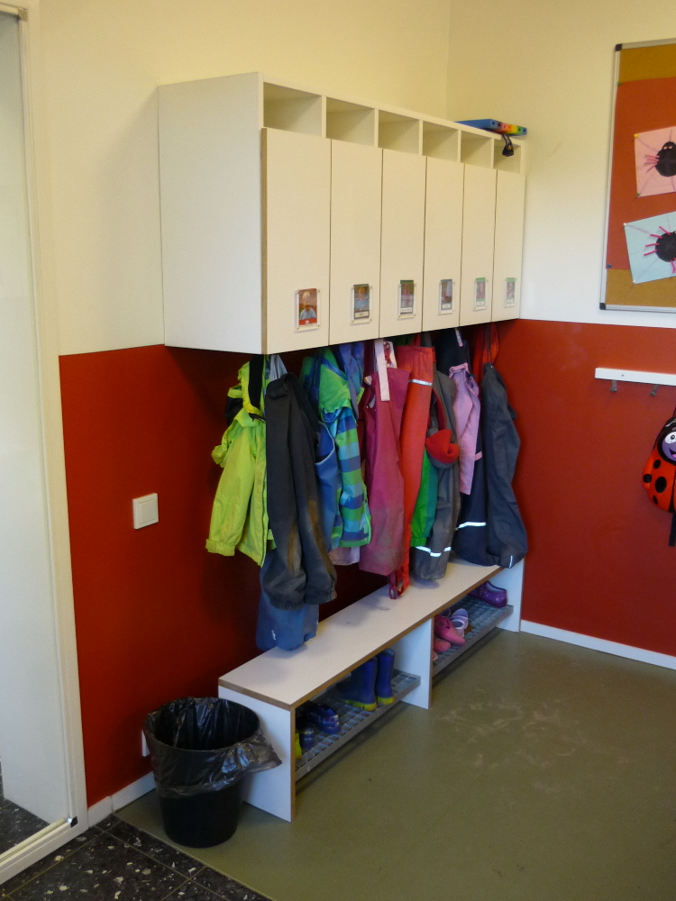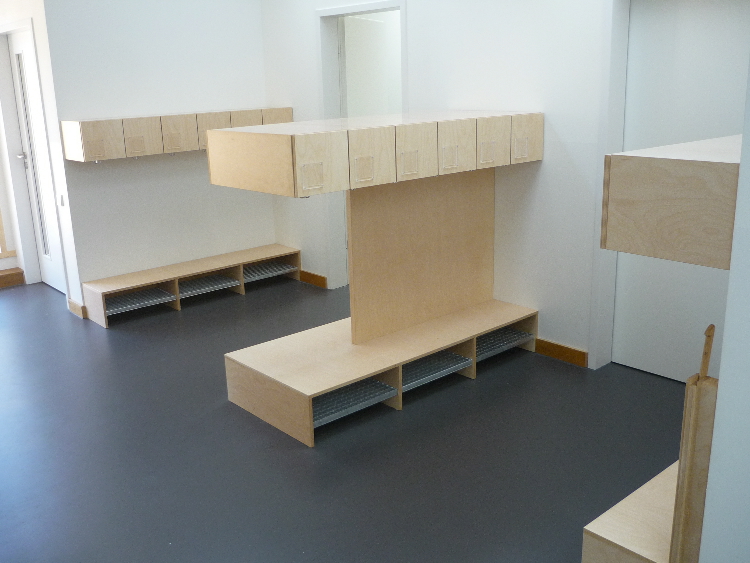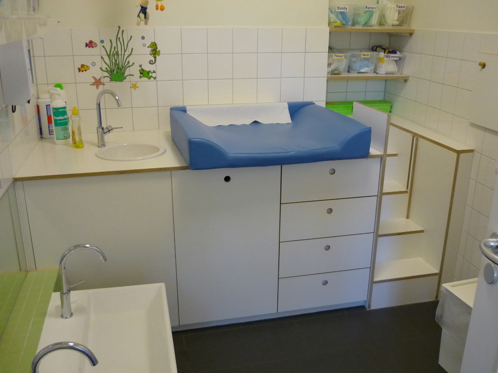 In den letzten Jahren sind in der Werkstatt eine Reihe von Kita- Einrichtungen entstanden. Beim Bau von Garderoben, Wickeltischen, Podesten, Tischen und Möbeln für die Mitarbeiter konnten wir dabei umfangreiches Wissen über die besonderen Wünsche und Bedürfnisse dieser Kunden sammeln. Teils folgten wir dabei den Entwürfen der Architekten, wie z.B. bei den Wickeltischen und Garderoben "Wacker-Zeiger-Architekten" aus HH-Altona. Dann wieder waren unsere eigenen Ideen bei der Gestaltung und Konstruktion gefragt.