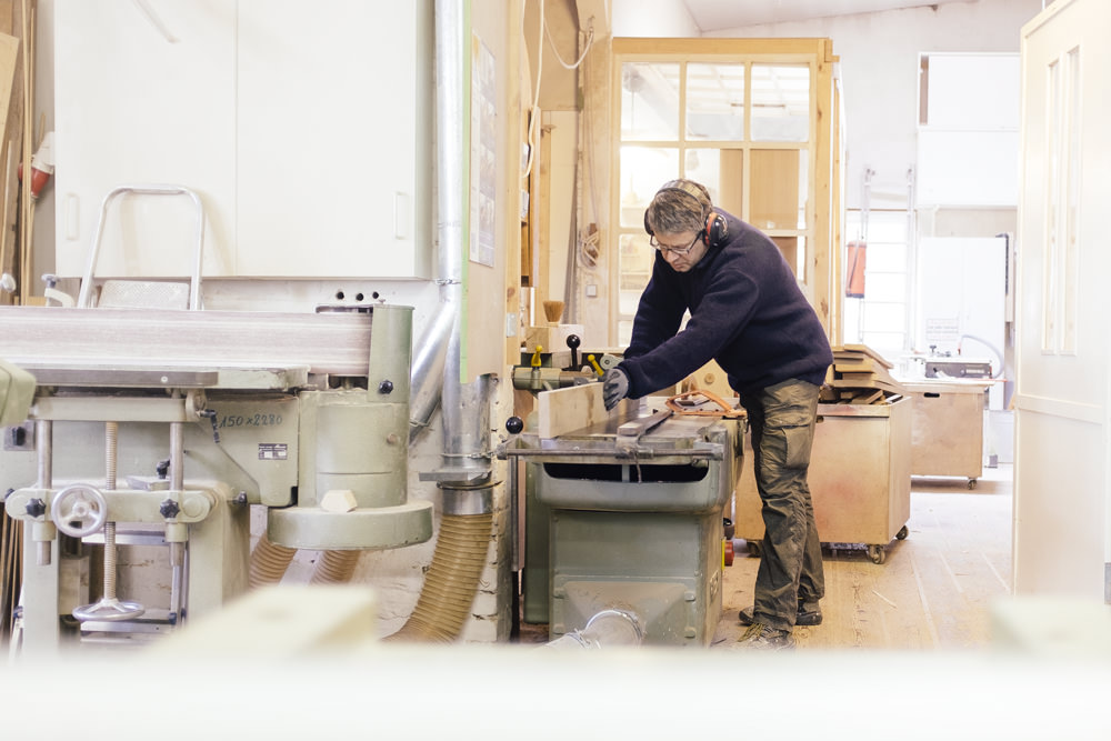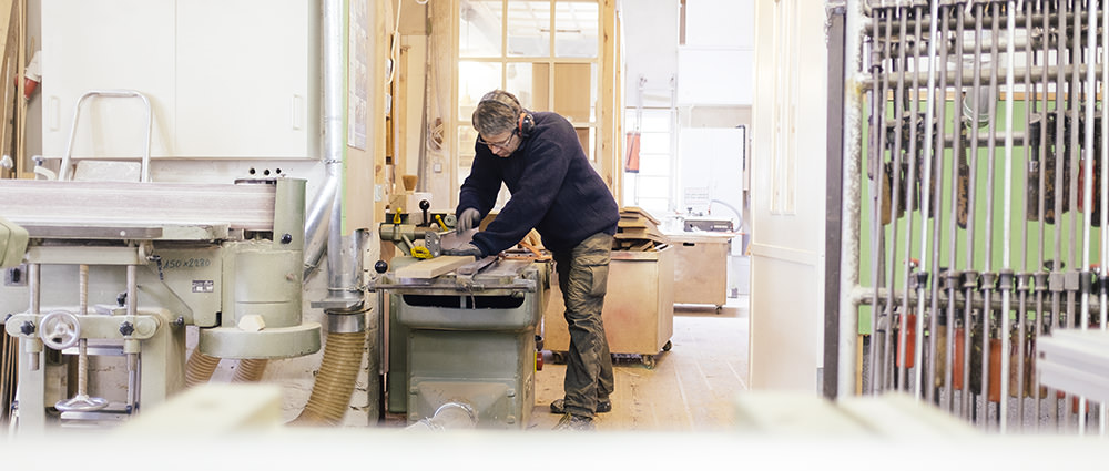 In unserer vielseitig ausgestatteten Werkstatt verarbeiten wir Massivholz und alle gängigen Holzwerkstoffe in Kombination mit Metall, Glas, Linoleum, Plexiglas und LED-Technik. Die Oberflächen können farbig lackiert, geölt, gewachst, geseift, mit Furnieren, Schichtstoffen oder Linoleum beschichtet sein oder einfach nur geschliffen. Für die Zufriedenheit des Kunden legen wir großen Wert auf gleichbleibend hohe Qualität und gute Kommunikation.